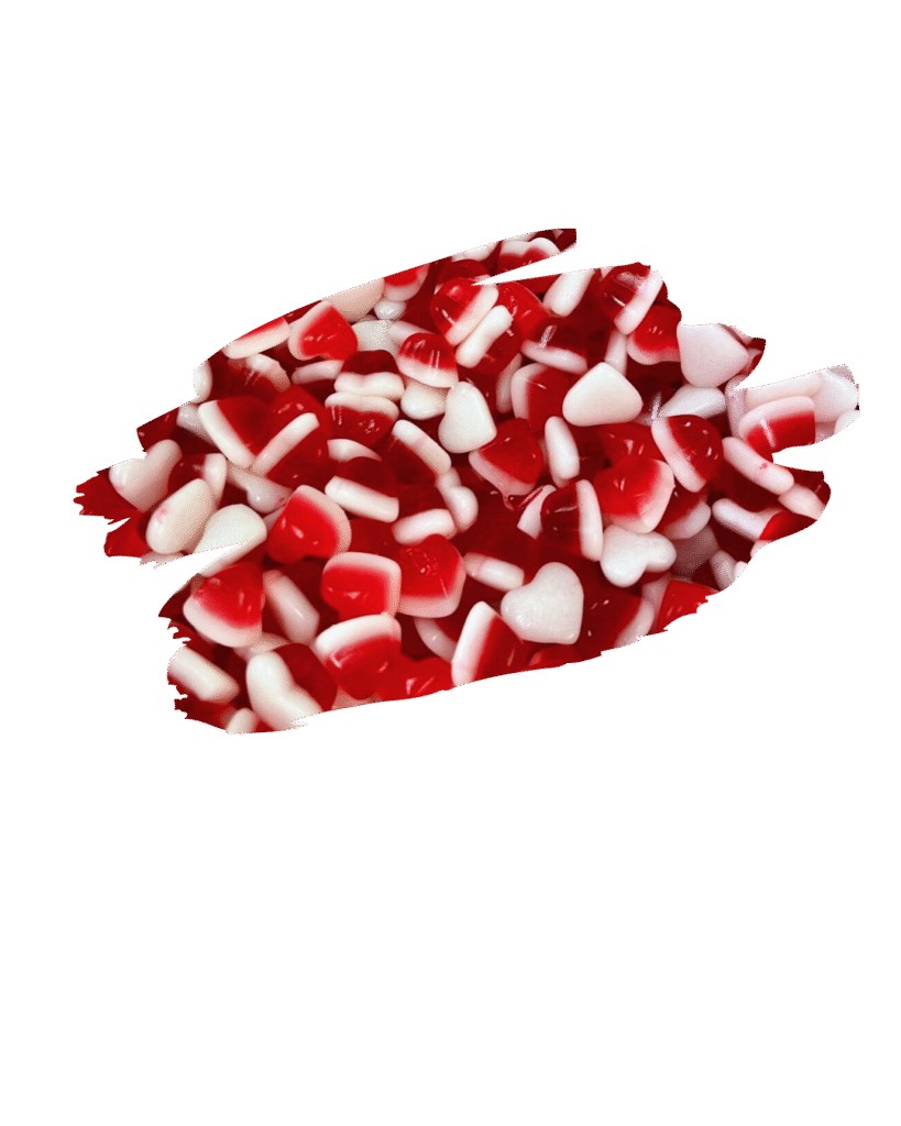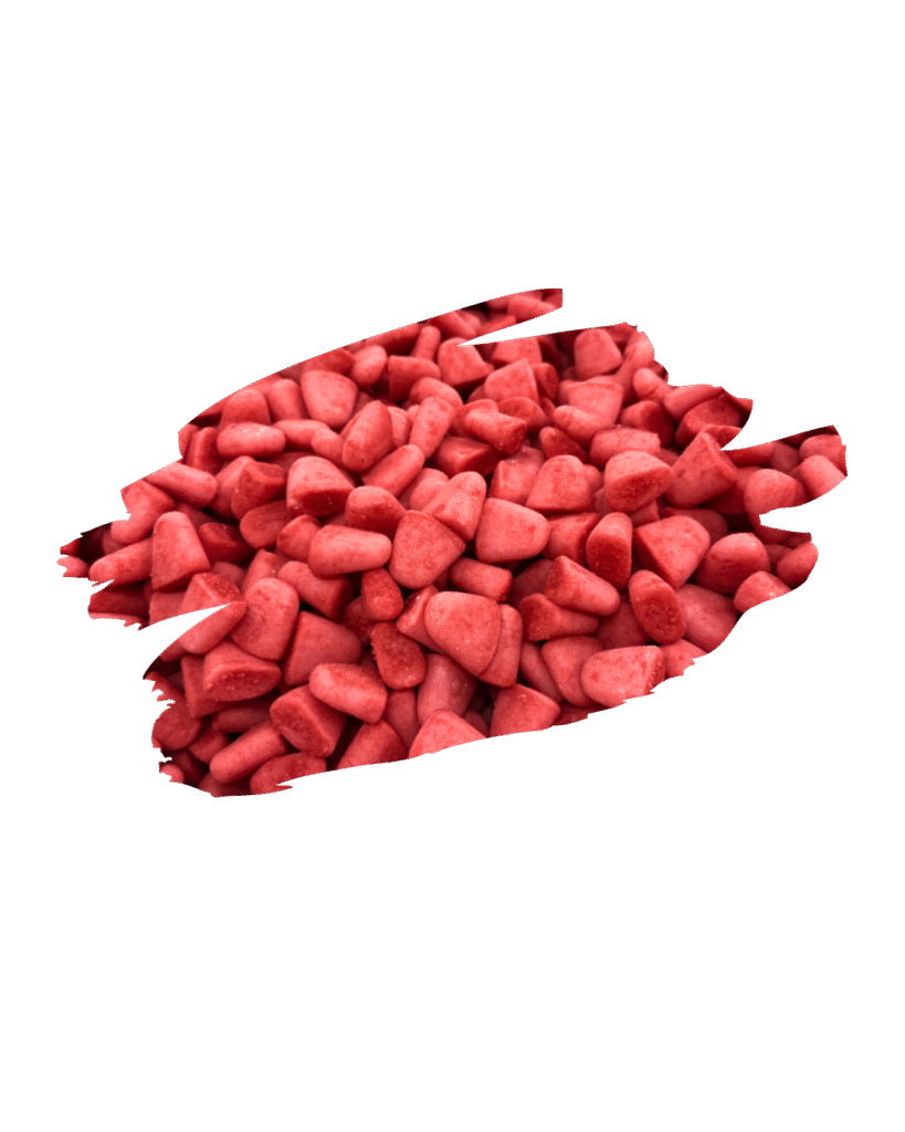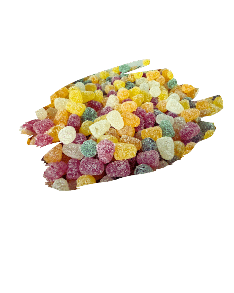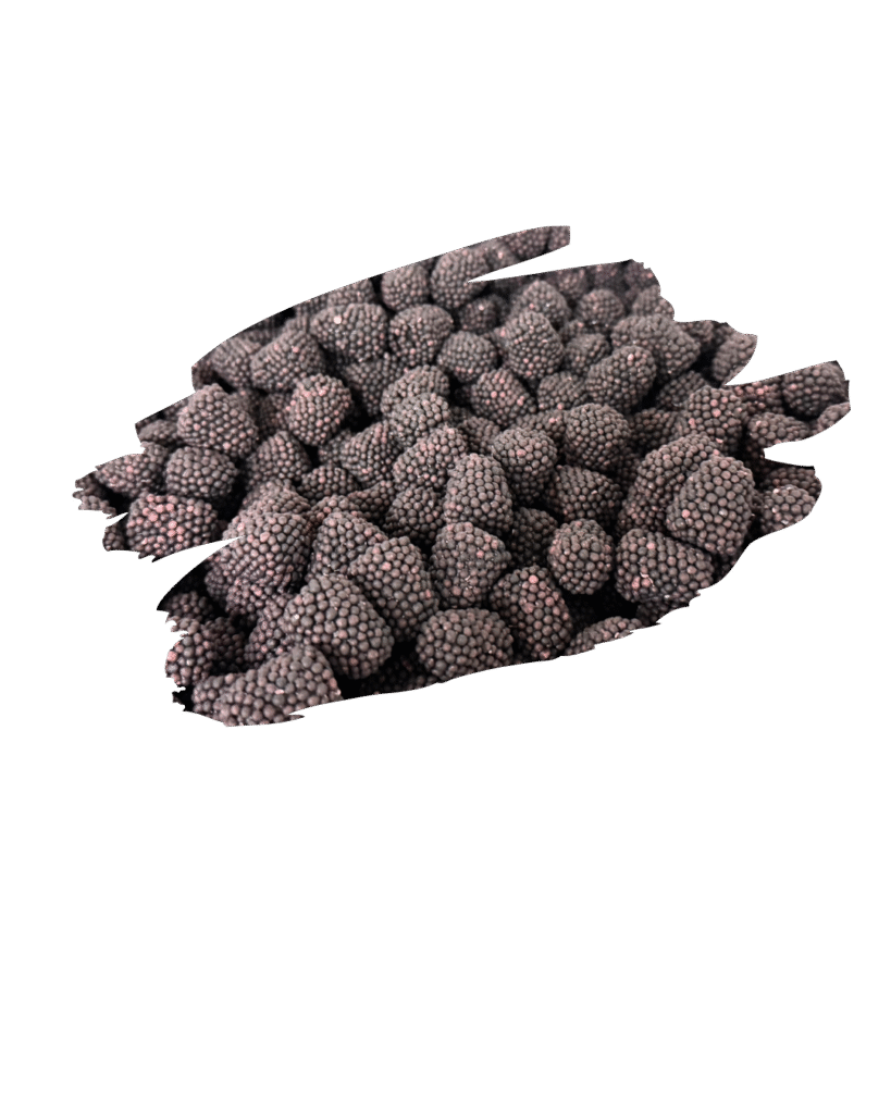 Żelki owocowe w kształcie malin i jeżyn w posypce wzbogacone witaminami E, C, B6 i B12.