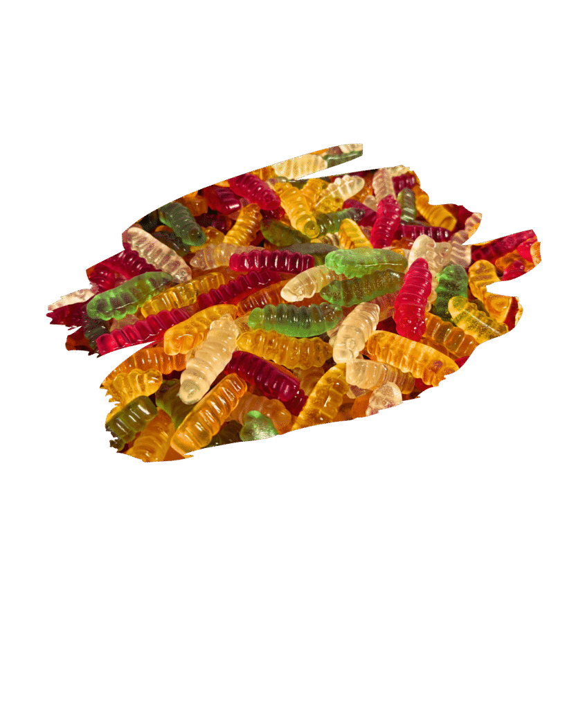 Pyszne żelki owocowe w kształcie kolorowych robaczków wzbogacone o witaminy E, C, B6 i B12